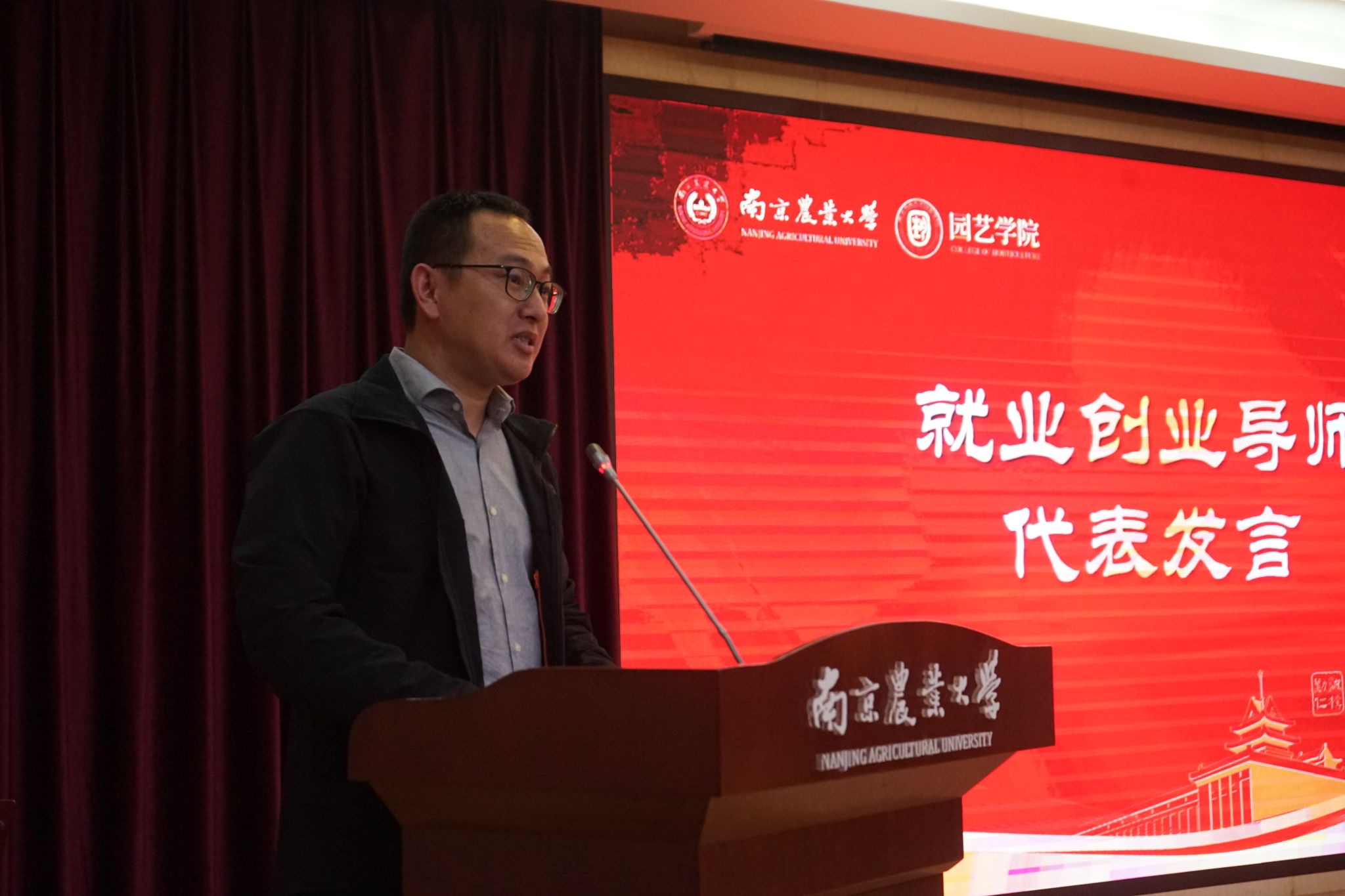 姚礼报作为就业创业实习基地代表发言。他表示学校是科技创新的前沿,企业是市场实践的先锋,希望园艺学子珍惜在校求学岁月,打好学科专业基础,同时也将携手学校,探索校企合作更多可能,助力青年走向社会,发挥属于自己的光和热。