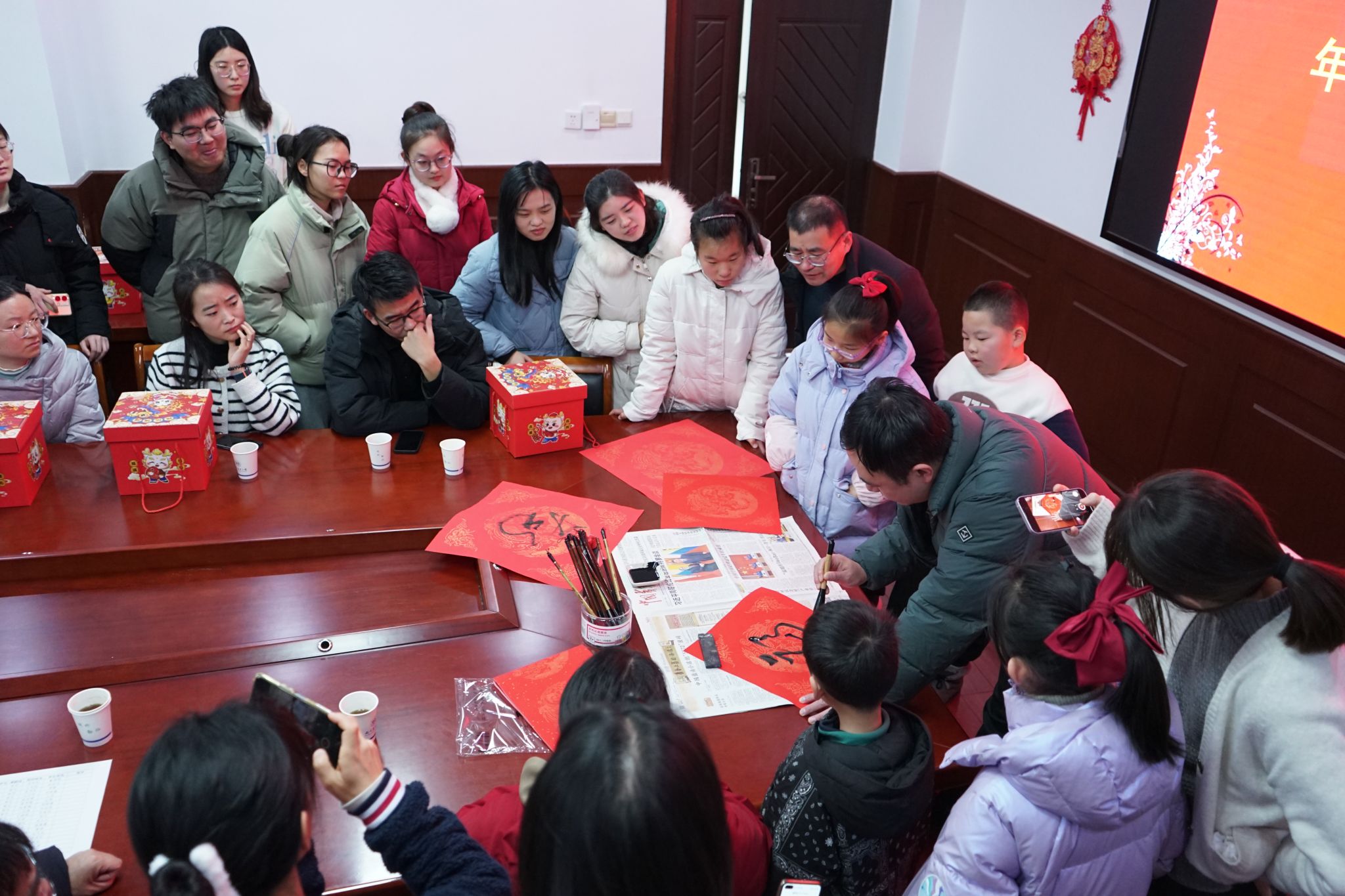 座谈会后,新春书法送福活动继续进行。学院邀请到理学院王环宇老师进行书法文化讲授及春联书写指导。留校师生共同拿起毛笔,铺红纸,沾墨砚,写福字,有手忙脚乱的横七竖八,也有清雅脱俗的一笔一画。红色的纸,黑色的字,你一言我一语的热闹劲,“年”的味道在小小的会议室里不断汇聚,最后在每个人的心间散开。