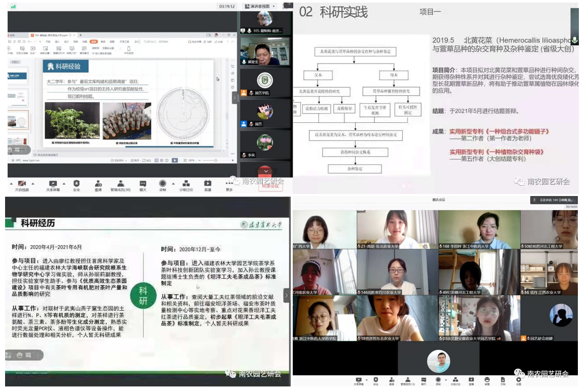 2021年7月13日8:30,必赢bwin官网登录入口2021年全国优秀大学生创新论坛在学院精艺厅开幕。必赢bwin官网登录入口院长吴巨友,必赢bwin官网登录入口党委副书记文习成,必赢bwin官网登录入口副院长、观赏园艺学学科点点长陈素梅,园艺系系主任上官凌飞,茶学系系主任陈暄,设施农业科学与工程系系主任束胜,导师代表高志红,研究生辅导员芮伟康,以及经过层层选拔、来自全国各地54所高校的共170名本科生通过网络相聚云端,参加了论坛的开幕式。开幕式由学院党委副书记文习成主持。