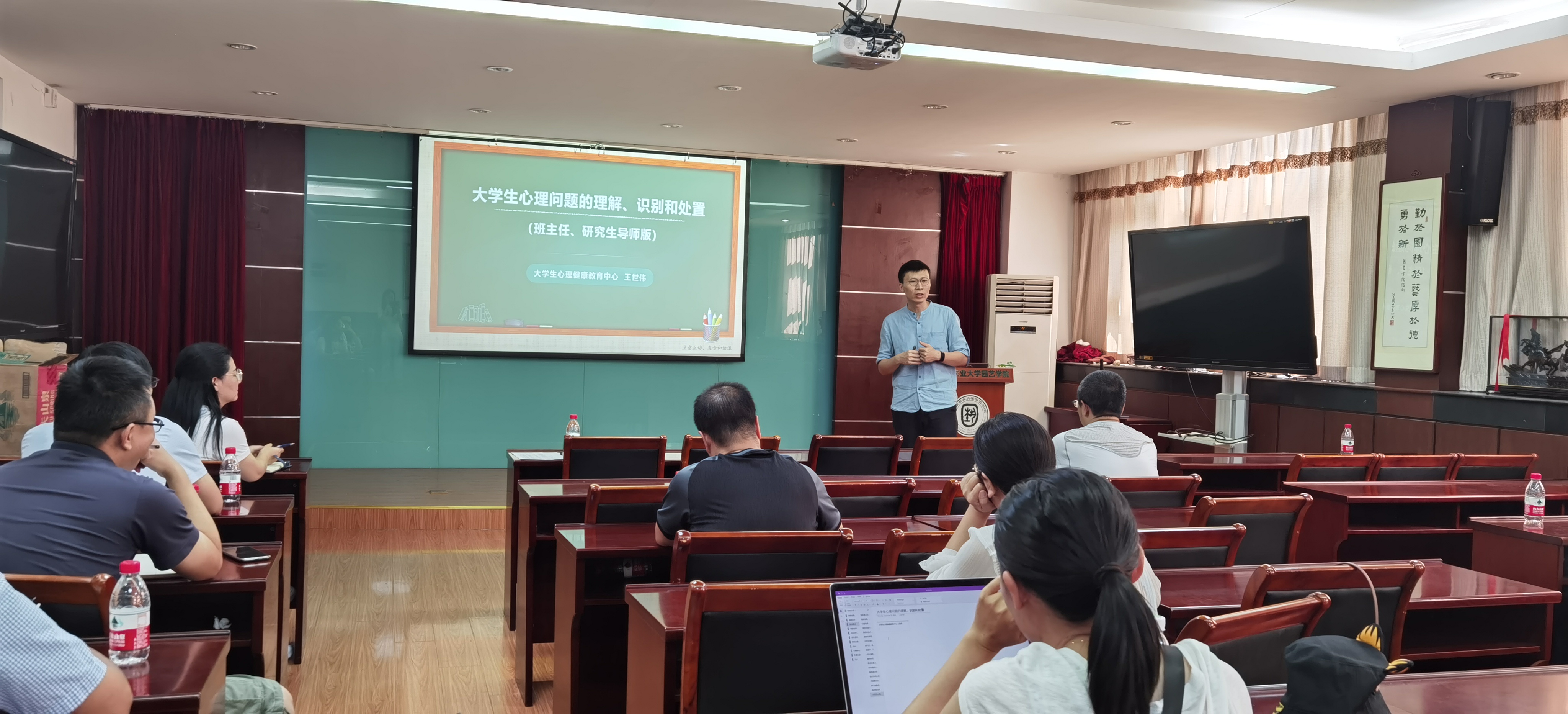 为加强对大学生心理健康的指导,必赢bwin官网登录入口于2021年9月23日下午在生科楼B4010举办“大学生心理问题的理解、识别和处置”的主题培训讲座,学工处心理中心主任王世伟受邀开讲。学院部分本科生班主任和研究生导师参加讲座,讲座由辅导员鲁月主持。