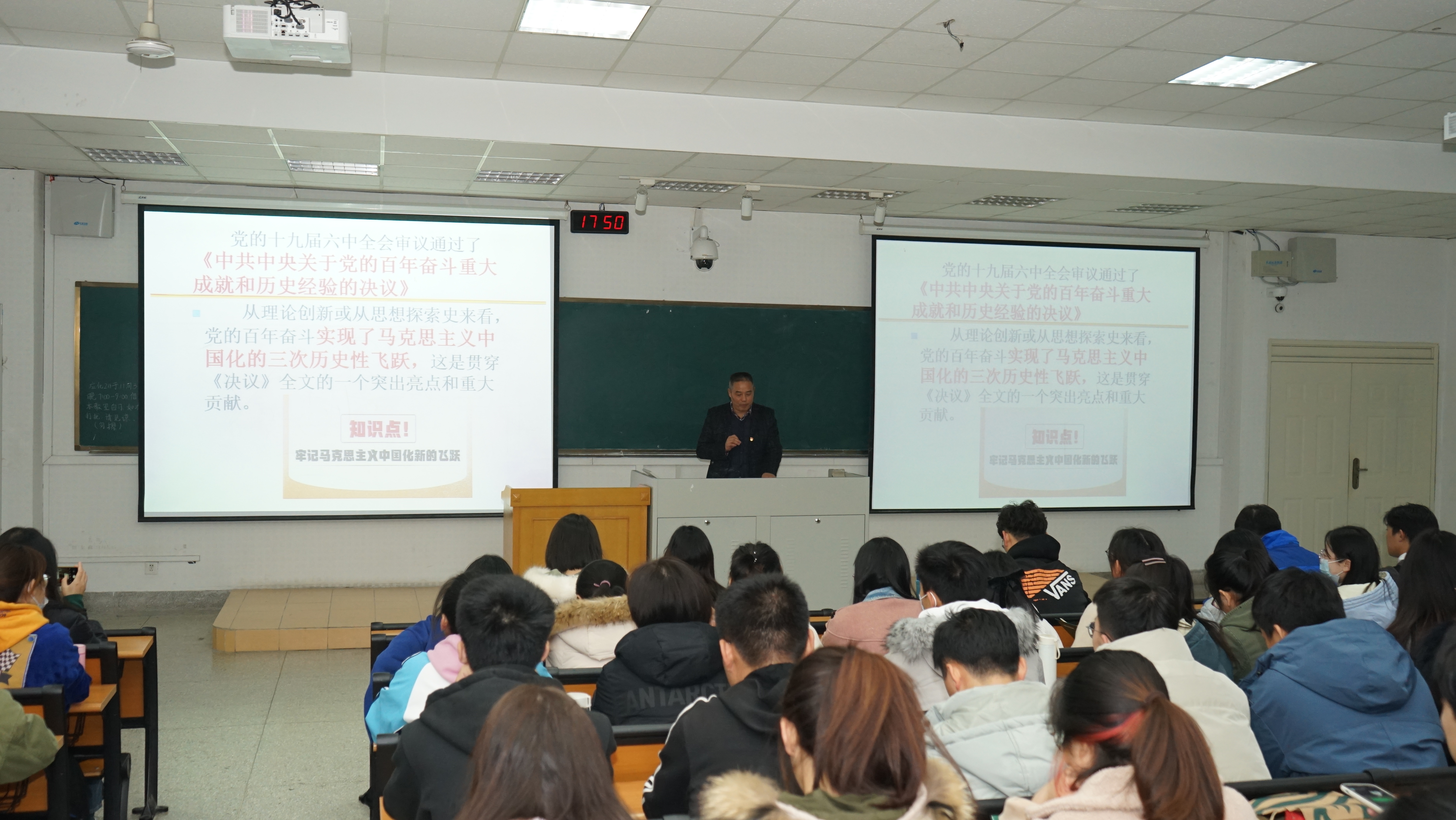吴国清教授以《学好党的十九届六中全会精神,感悟马克思主义中国化新的飞跃》为题,从学习十九届六中全会精神两个基本依据、学好十九届六中全会必须把握的重要内容、感悟马克思主义中国化新的飞跃等三个方面,对十九届六中全会报告做了生动讲解。
