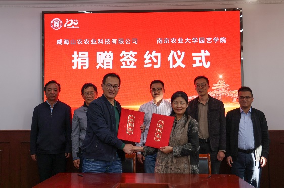 10月11日下午,威海山农农业科技有限公司捐赠仪式在必赢bwin官网登录入口举行。必赢bwin官网登录入口2008级设施农业科学与工程专业校友、威海山农农业科技有限公司总经理于超,必赢bwin官网登录入口党委书记韩健,院长陈素梅,党委副书记文习成,设施系教授郭世荣,设施园艺学科点点长孙锦,设施系系主任束胜等出席仪式。