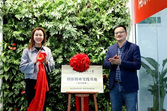 韩健与高桓为“必赢bwin官网登录入口创新创业实践基地(拙景园林)”揭牌。