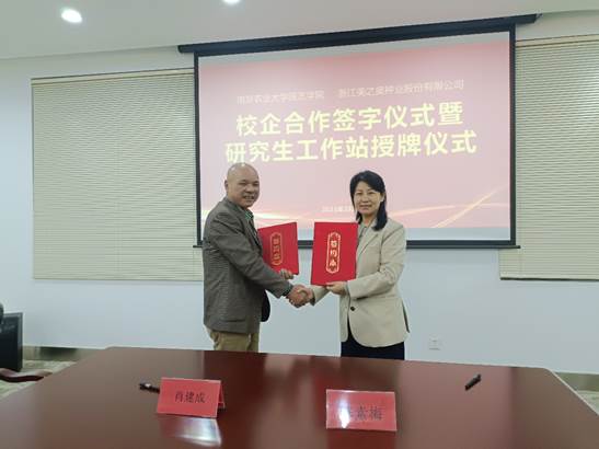 陈素梅院长代表学院向美之奥种业股份有限公司的长期支持表示感谢,希望以本次合作签约为契机,贴合专业优势与企业发展需求,在多方面加强深化合作,推动校企合作迈入新的阶段,也希望通过就业创业实习基地和研究生工作站签约,搭建优质平台,提升人才培养质量,促进毕业生更充分高质量就业,同时为企业提供科技人才支撑。