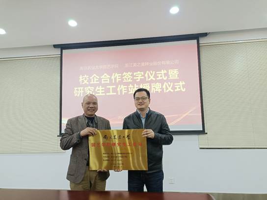 就业工作事关发展大计、关于民生大局,为深入贯彻落实两会提出的就业优先战略和学校招生就业工作大会要求,扎实推进学院就业工作落实和产学研合作,3月30日,必赢bwin官网登录入口党委书记韩健、院长陈素梅,蔬菜学科陈劲枫教授、张昌伟副教授,学院办公室主任王乙明、学工办主任窦靓、本研学生代表等一行师生10人,赴浙江美之奥种业股份有限公司调研考察、座谈交流,并举行双方合作协议签署仪式、就业创业实习基地签约仪式及研究生工作站授牌仪式,深入推动校企合作,开拓学生高质量就业渠道。