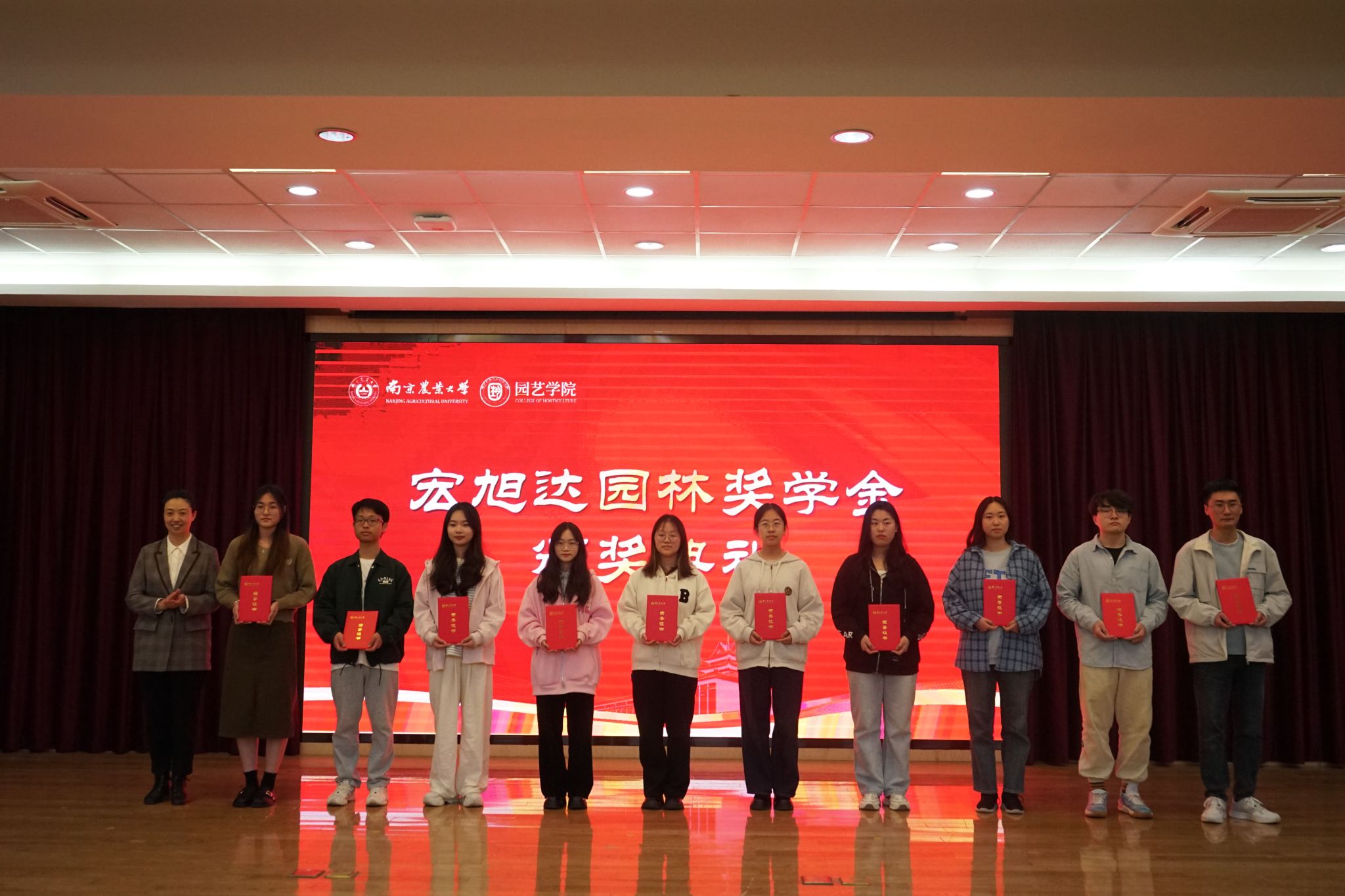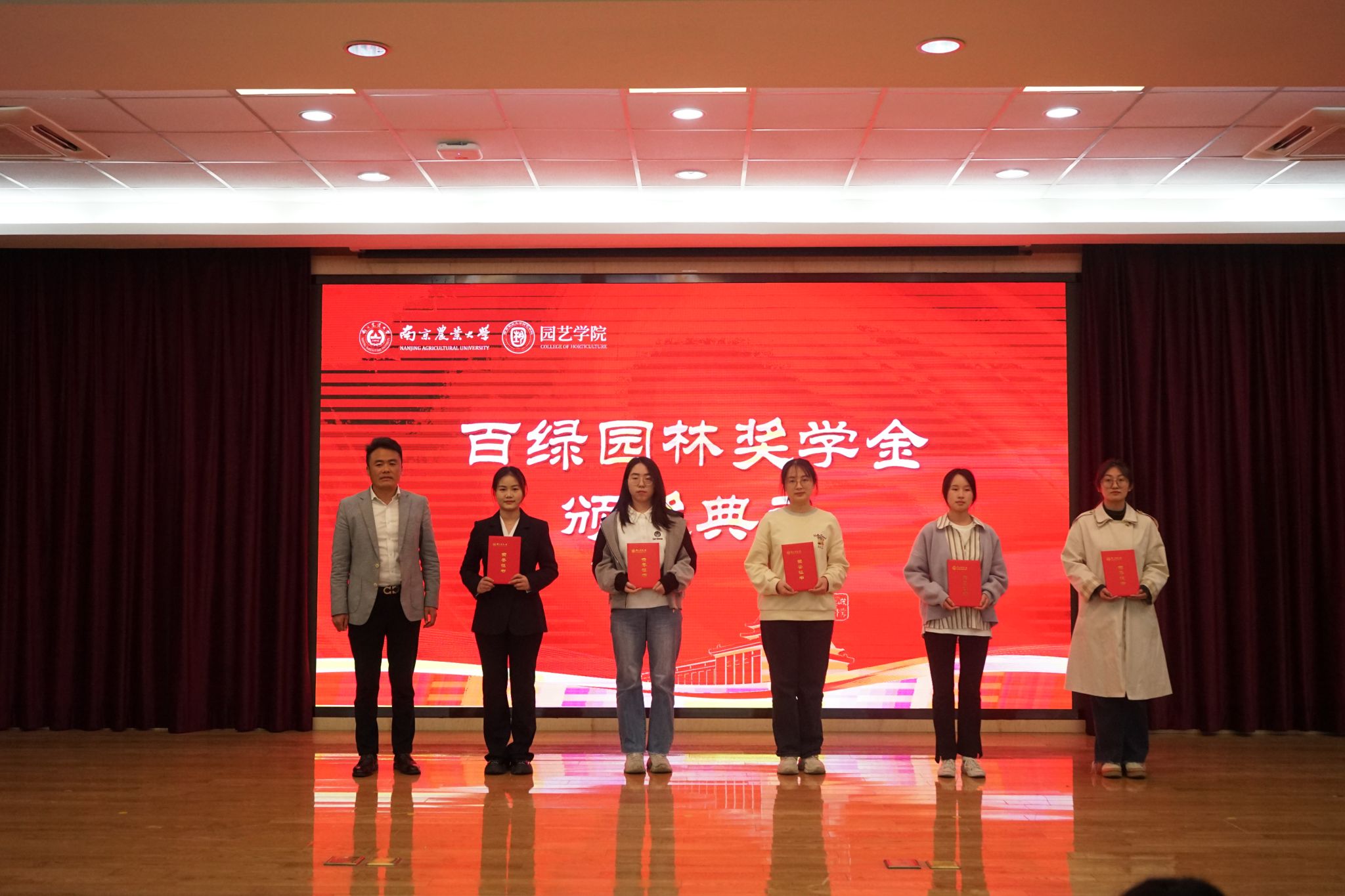 企业及教师代表为获百绿园林奖学金、坂田种苗企业奖学金、章镇奖学金、厚德于超项目)奖学金、宏旭达园林奖学金、凝心聚力学业奖学金、梦起南源创新创业奖学金的53名学生颁发获奖证书。