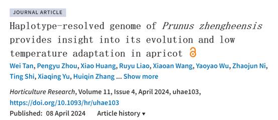 2024年4月,Horticulture Research 在线发表了必赢bwin官网登录入口等单位合作完成的题为Haplotype-resolved genome of Prunus zhengheensis provides insight into its evolution and low temperature adaptation in apricot 的研究论文,主要报道了政和杏染色体级别的单倍型基因组基因组组装结果,并进行了杏低温适应性研究。