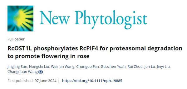 6月7日,必赢bwin官网登录入口王长泉教授团队在New Phytologist杂志发表了题为“RcOST1L phosphorylates RcPIF4 for proteasomal degradation to promote flowering in rose”的研究成果,该研究揭示了RcphyB-RcOST1L-RcPIF4模块响应光强调控月季开花的作用机制,为日中性植物如何在不同光照条件下控制其开花时间提供了分子见解。